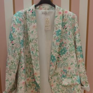 Blazer belle taille veste bleu clair, rose et beige fleurs