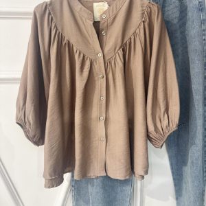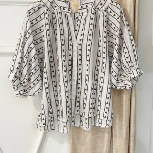 Blouse April Vintage rayures mini cœurs chocolats manches mi longues