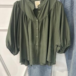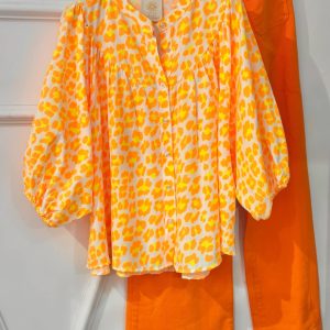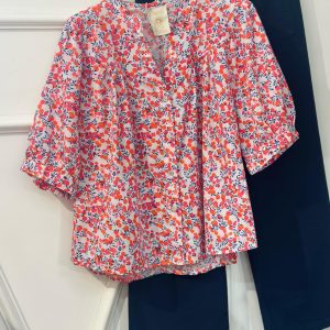 Blouse April Vintage liberty rouge et rose manches mi longues