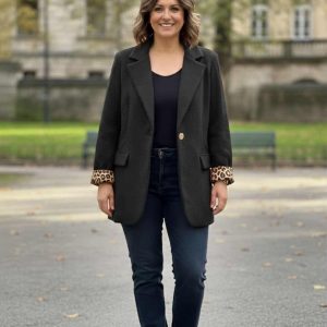 Blazer soirée réveillon manches en sequins noir grande taille dispo et petite taille