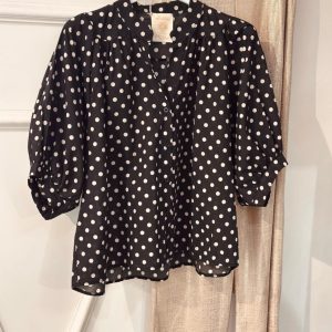 Blouse April Vintage rayures mini cœurs chocolats manches mi longues