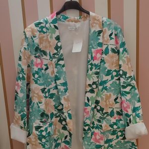 Blazer belle taille veste bleu clair, rose et beige fleurs