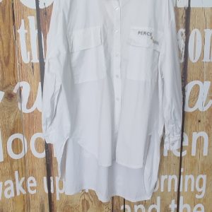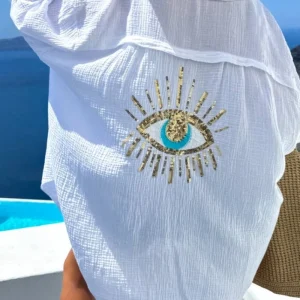 Chemise gaze de coton oeil brodé au dos oversize blanc