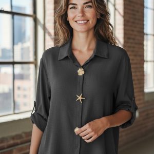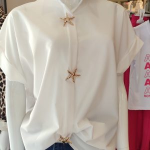 Chemise noir manches trois quart avec broches dorées