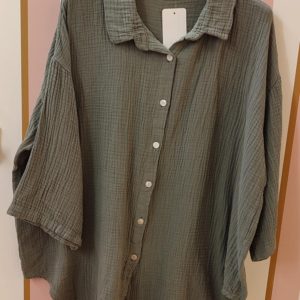 Chemise grande taille gaze de coton kaki