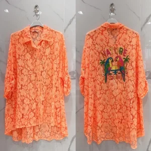Chemise grande taille ajourée orange fluo perroquet