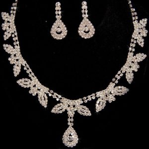 Parure élégante collier et boucles couleur argent