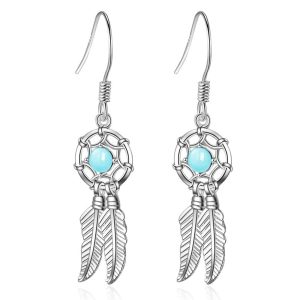 Boucle d’Oreille Attrape-RêvePlume Turquoise