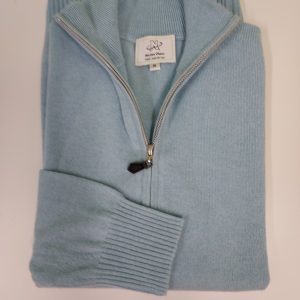 PULL CACHEMIRE COL ZIP BLEU CLAIR