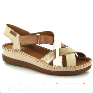 Sandale cuir souple femme talon compensé coloris beige/marron/or PIKOLINOS cadaques