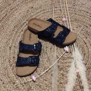 Claquettes sandales à lanières paillettées noir et bleu marine Findlay