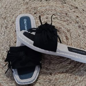 Minorquines espadrilles avec bout ouvert et bride élastique noir