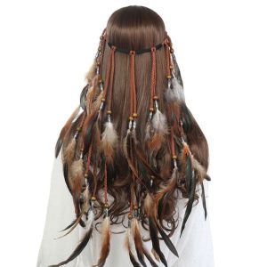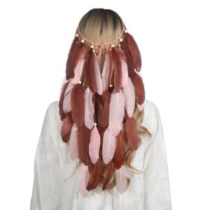Bandeau à Plumes Marron Rose