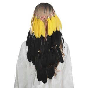 Coiffe Indienne à Plumes Jaunes et Noires