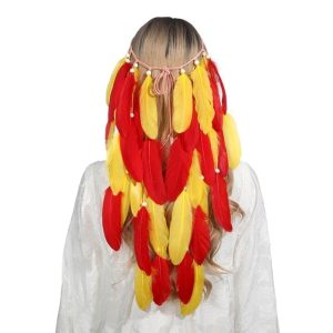 Coiffe Indienne à Plumes Jaunes Oranges