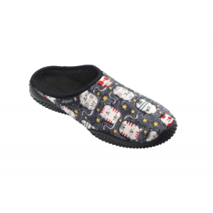 Mules femme AIRPLUM motif chat coloris gris multi semelle plate chaudes