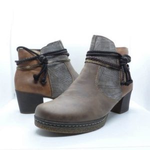 Bottines femme lacet+zip Doublure chaude Talon carré RIEKER coloris tan / multicolore