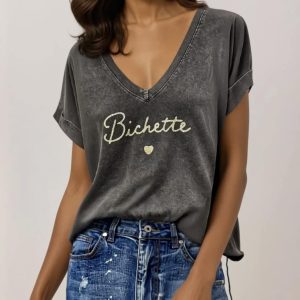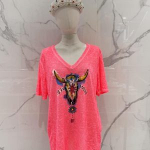 Tee-shirt belle taille tête de buffle corail fluo bohème