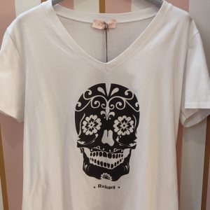 Tee-shirt blanc tête de mort noir rock April Vintage