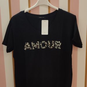 Tee-shirt grande taille noir cerise imprimé léopard 44/48