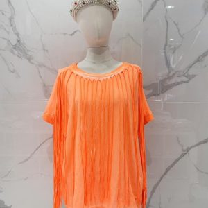 Tee-shirt grande taille franges couleur orange fluo petites manches