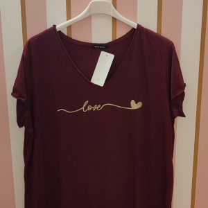 Tee-shirt love cœur bordeaux