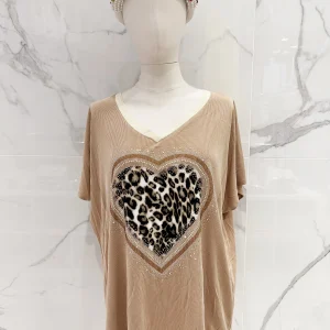 Tee-shirt grande taille coeur leopard strass camel
