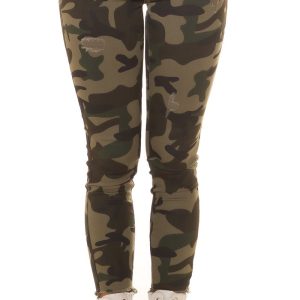 Jean femme push-up taille haute sexy look usé avec imprimé
