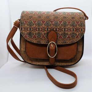 Petit sac à main, multi poches avec rabat, synthétique et liège, Coloris marron multi, MANDOLINE