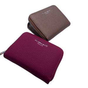 Porte-monnaie femme forme rectangulaire matière grainées coloris rose fuchsia ou marron glacé FLORA&CO PARIS