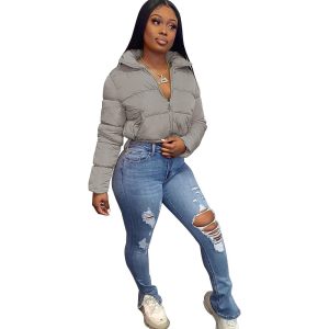 Doudoune sexy à manches longues avec fermeture éclair épaisse
