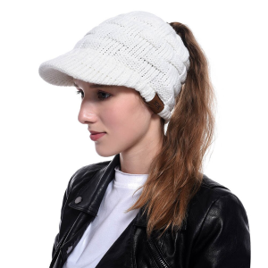 Casquette laine polaire tricoté avec ouverture queue de cheval