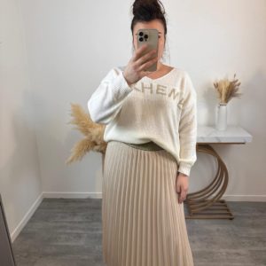 Jupe grande taille plissée élastique à la taille beige