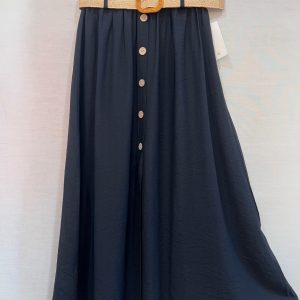 Jupe longue noir avec boutons et ceinture