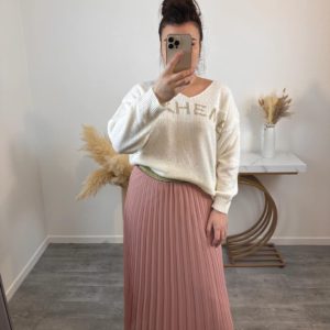 Jupe plissée élastique à la taille rose poudré
