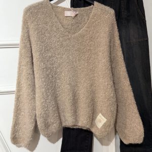 Pull col V April Vintage beige