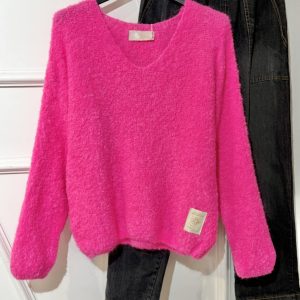 Pull col V April Vintage rose fluo