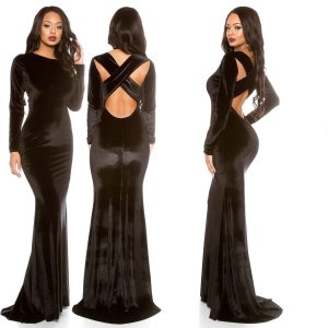 Robe longue dos demi nu croisé femme sexy CHRYSTEL couleur noir