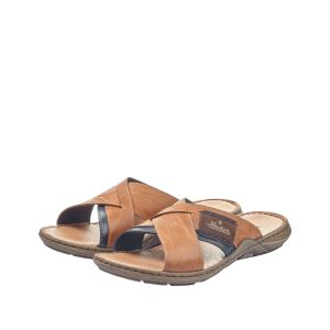 Mule ouverte homme brides croisées semelle souple coloris cognac RIEKER 22080-24