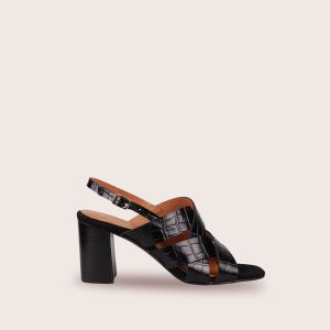 Sandales à haut talon en cuir noir effet crocco – Valerie