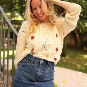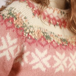 Maille doudou col rond manches chauve-souris taupe/crème/marron