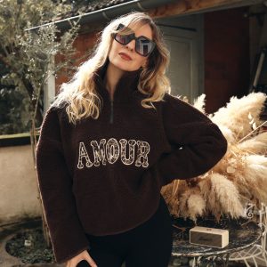 Polaire encolure camionneur AMOUR chocolat