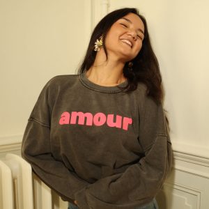 Sweat amour gris anthracite et rose fluo