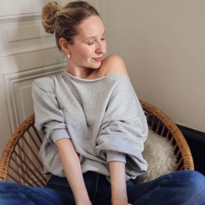 Sweat Flashdance gris chiné, bordeaux et marine