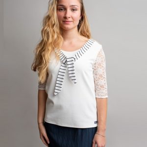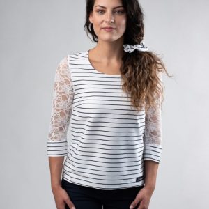 Tunique rayée et sa dentelle beige