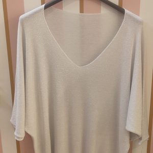 Top pull fin maille pailletée gris clair