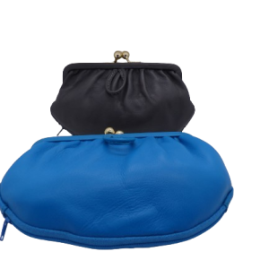 Bourse femme porte-monnaie cuir multipoches fermeture par clic clac armatures dorées coloris gris ou bleu