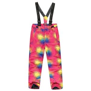 Pantalon ski femme élastique avec bretelles et motifs de couleurs