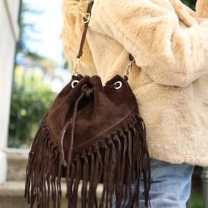 Le sac seau à franges en cuir Taylor tons nude, différents coloris