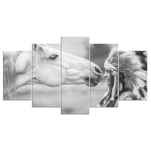 Tableau Indien Amérindienne et sa Jument
